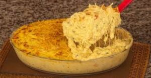 Fricassê de frango cremoso e fácil, feito com milho, requeijão e frango desfiado, perfeito para refeições práticas e reconfortantes.