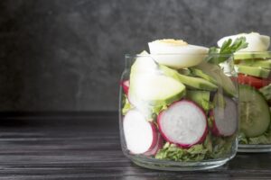 Cinco receitas de saladas no pote práticas e nutritivas, com montagem correta e planejamento semanal para facilitar a rotina alimentar.